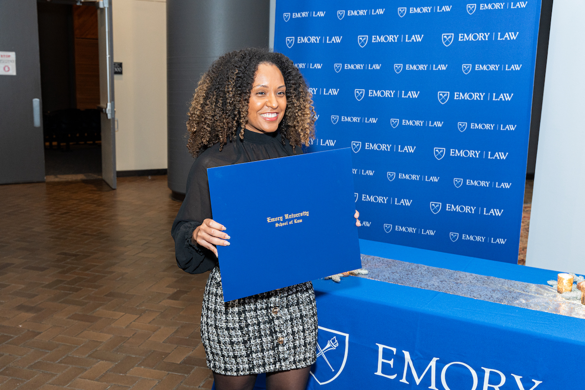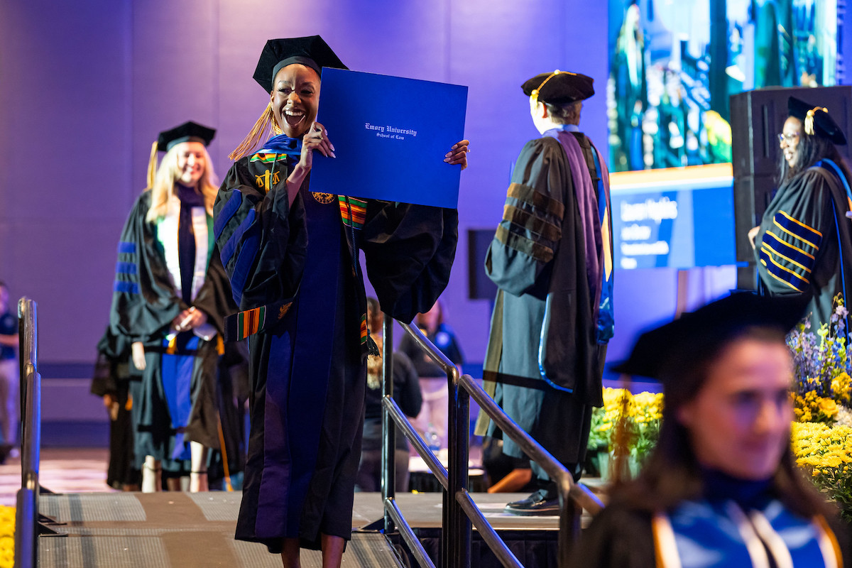 Emory University School of Law held its Degree Candidate Recognition Ceremony, celebrating students who earned doctor of juridical science, juris doctor, master of laws, master of comparative law, juris master, and dual degrees. Nearly 300 students attended in person and approximately 15 students participated virtually, viewing the event as it was live streamed through the school’s website.